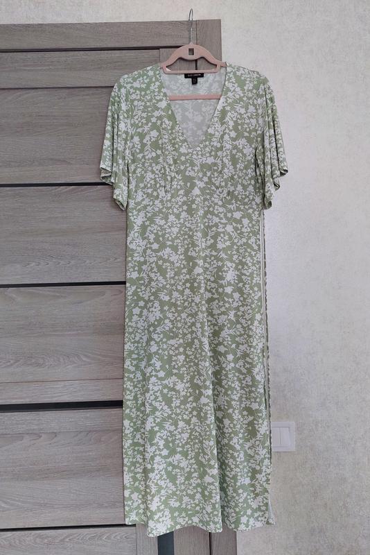 Нежное платье миди а-силуэта, зелено-оливкового цвета, в цветочный принт qed london ( разм...