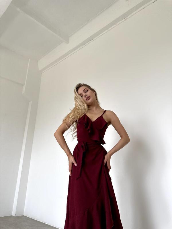 Сукня Размер:42-46,48-50 Тканина: софт Цвет:бутилка,марсал, черный Платье на запах, с регулирующими бретелями