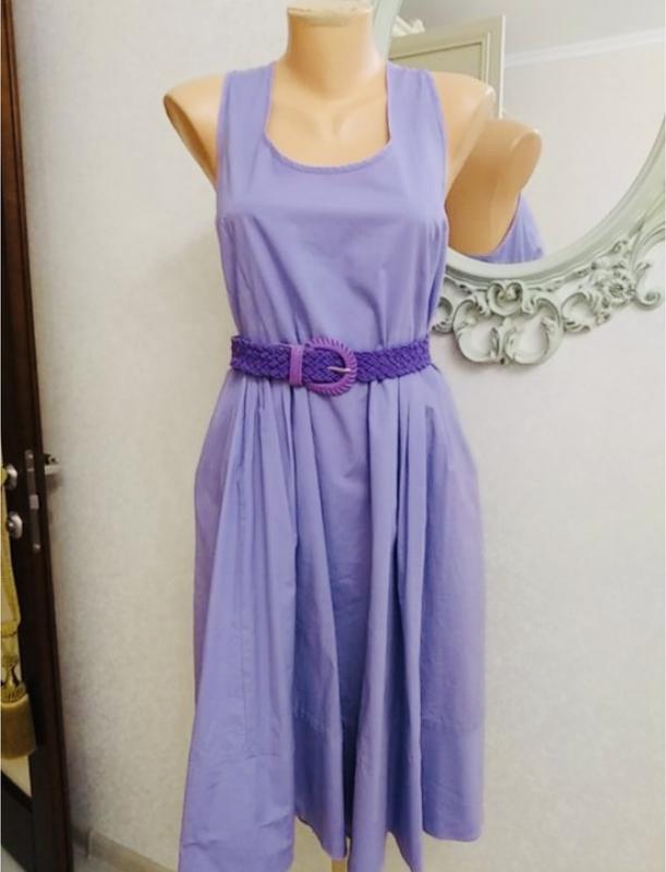 Батал!!! Лавандовое платье сарафан миди!!! Можно носить под пояс либо в свободном стиле! Нижняя часть - на подкладке! Состав ткани : хлопок + эластан, поэтому платье тянется! Указан размер 20, но скорее подойдет на 12-14-16-18, так как лиф был уменьшен, ориентируйтесь на замеры: Длина от плеча - 103 см ПОГ - 51 см (тянется до 57 см) ПОТ - 51 см (тянется до 56 см) ПОБ - свободно ( спереди и сзади по две группы складок) Плетенный пояс продается отдельно ( 170 гр)