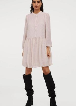 ⛄Новогодняя акция 2+1!!!⛄😚😍😍 Покупай 2 товара и 3 получай в подарок 🥰(с самой низкой ценой) ❄ Акция действует при оформлении заказа в личных сообщениях ❄ Красивое, воздушное, нежное платье без подклада. Шикарный цвет- нюдовая пудра. Сильно не просвечивает, все в стиле H&M. Актуально, сексуально, лаконично! Выполнено из тонкой структурной ткани в мелкий выделенный горошек. Стильные широкие рукава, слегка присборенные сверху и внизу на тонкой манжете, с застежкой на одну пуговку. Воротник стоечка, застежка спереди до пояса на пуговицах. талия немного занижена, подол свободный в мелкую складку. Обалденно сидит на фигуре, стройнит. Состояние идеальное, как новое! Замеры: плечи-40; ширина по крою рукава-30; длина-64. Под мышками-63; пот-65; поб свободный до 103. Длина по спине- 97. Отправка Новой Почтой, Укрпочтой, обращайтесь)