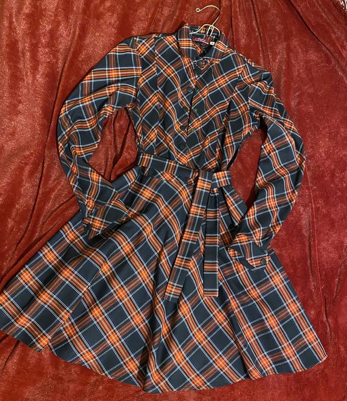 Дуже стильна та класична сукня в клітинку з поясом - молодого українського дизайнера “Milena Amelchenko”. Акуратний крій, зручний комір, збоку є блискавка. Закльопки металеві.