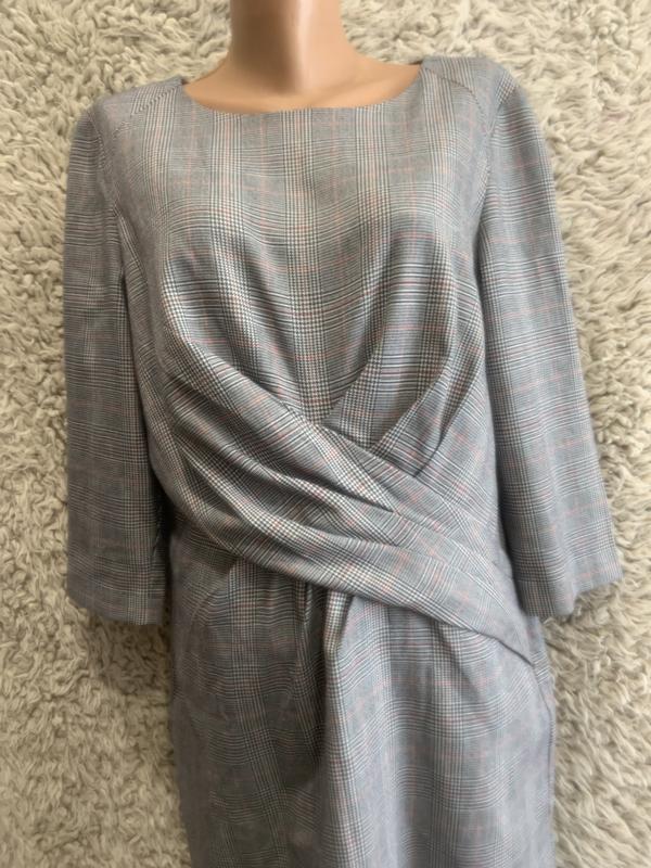 Оригинальное платье в клетку на подкладе. Спокойный сдержанный цвет оттенков.. Хорошее качество, великолепный дизайн. Рукав 3/4 Длина 102 см ПОГ 50 см Пот 45 см Застежка сзади на всю спину