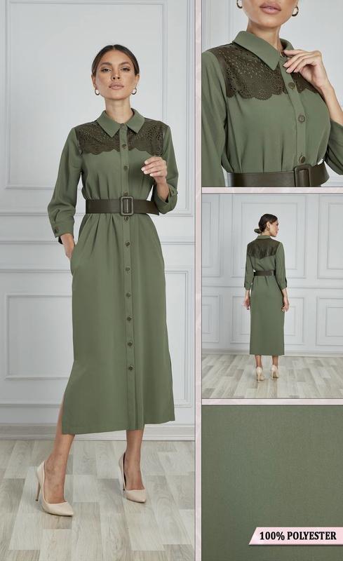 Великолепное платье в цвете Хаки (Dzyn 9228) Размеры:36,38,40 Длина 120см Фасон рубашка,прямая,на все типы фигур Есть стильный поясок Пуговицы обтянуты кожзамом Производитель Турция