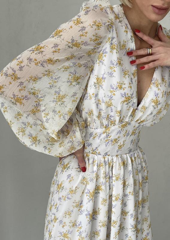 Шифоновое платье миди в принт с рукавом Длина :миди Ткань : шифон Размер: S/L Есть разные цвета