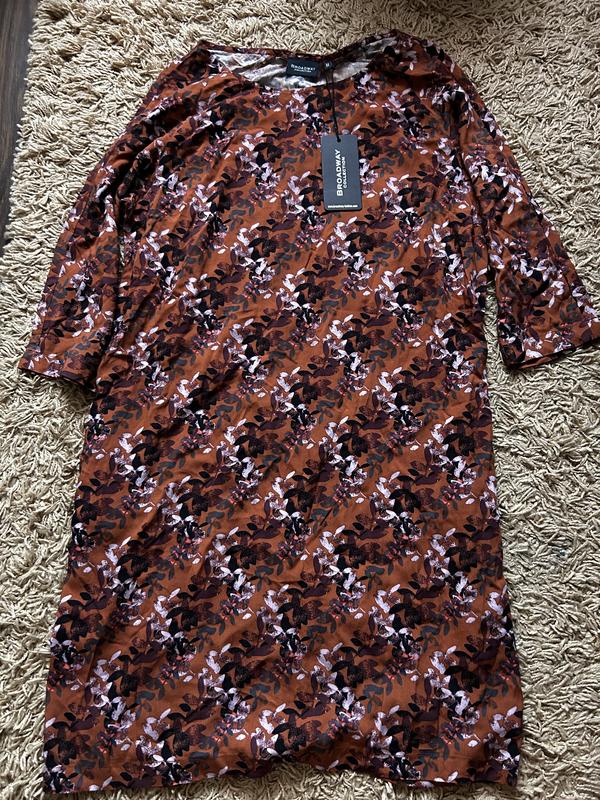 Нова сукня, тканина легка, 100% віскоза. Заміри: напівобхват грудей 52 см, напівобхват талія 56 см, напівобхват стегон 58 см, довжина 97 см, зріст моделі 165 см, рукав 51 см, плечі 50 см. Розмір М, підійде і на L