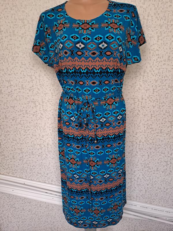 Літня сукня , стан новоі речи не секонд.Пог.50 см тягнеться, поб.54 тягнеться. Довжина 105 см з пояском.Внизу по бокам невеличкі розрізи.