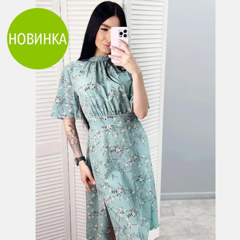 Платье-миди с воротником-стойкой "Stefania" 9334 Цвет 42-44 46-48 Фисташковый Бежевый Голубой Длина по спинке:108-110 см Длина рукава:16 см Материал: Софт