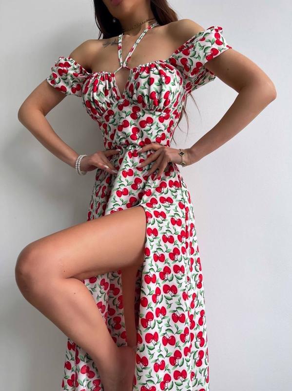 Сукня- міді з принтом 🍒🍒🍒 ▫️ціна 880 грн ▫️тканина: софт ▫️розмір: S та М