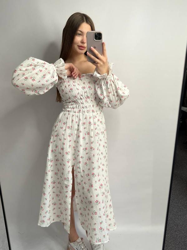 🤍Романтичное и женственное платье - миди с длинным рукавом. Создана из натуральной ткани быстро станет твоим фаворитом. Снизу имеет разрез на ножке и ниспадающий объемный рукав ✔️Цвет: красные цветы ✔️Ткань: Муслин ✔️Код: 124/23 ✔️Размер: XS/S • M/L 💵Цена: 1400 грн На модели размер XS/S