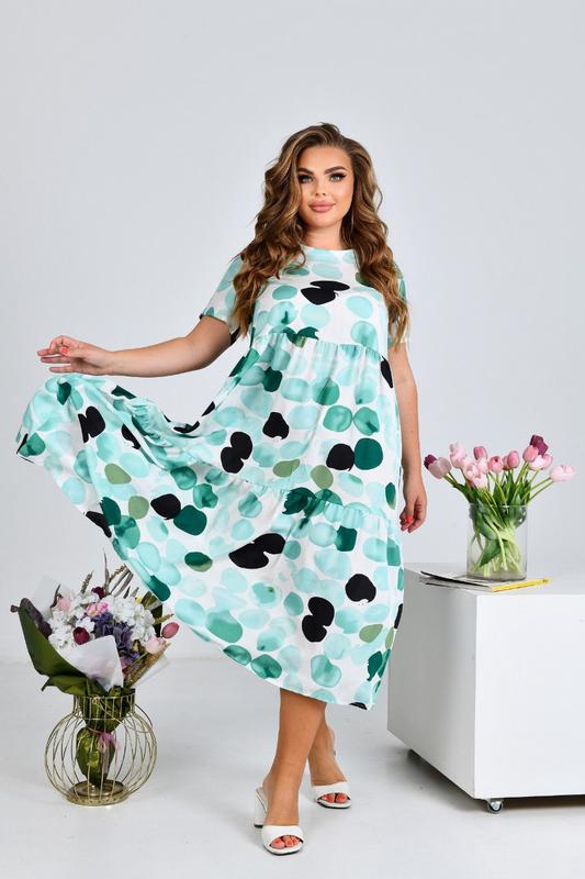 ✅☀Волшебное летнее платье из штапеля☀✅ Модель свободного кроя, с завышенной талией💫и карманами в боковых швах💢юбка свободная, двухъярусная💞по спинке горловина углублена, с завязками🎀рукава короткие💯 Мод: 17-301ТК 💵Цена: 910 грн Размеры: 52-54, 56-58, 60-62, 64-66 Тканина: штапель Замеры: • 52-54: длина платья 123 см, длина рукава 23 см, обхват рукава 38 см, ОГ - 110 см, ОТ -110 см, ОБ -170см. • 56-58: длина платья 124 см, длина рукава 23 см, обхват рукава 41 см, ОГ - 118 см, ОТ -118 см, ОБ-180см. • 60-62: длина платья 125см, длина рукава 24см, обхват рукава 44см, ОГ-126см, ОТ-126см, ОБ-190см. • 64-66: длина платья 126 см, длина рукава 24см, обхват рукава 46см, ОГ - 134см, ОТ -134см, OБ-200см Наложенный платеж по перед оплате 150 грн