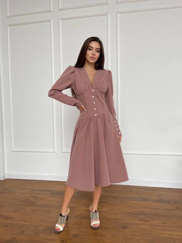 Чарівне плаття в довжині міді з перлинними ґудзиками ✨✨✨ Оригінальна талія з імітацією корсетного пояса😍 Сукня Мод.1039 Ціна 1140 грн Розміри С-М та М-Л Тканина креп-костюмка Колір Блакитний червоний білий мокко ліловий рожевий V