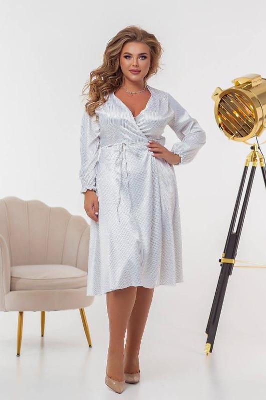 Сукня арт 05541 материал: шелк в полоску, одевается на запах. Замеры по изделию: длина 114 см, рукав от плеча 60 см: 48-52 - на ОГ 96-105, ОБ до 125 54-58- на ОГ 107-118, ОБ до 135 60-64 - на ОГ 120- 130, ОБ до 150