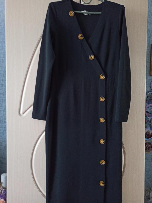 Деловое стильное черное платье по фигуре, р.14, но смотрите на замеры: длинна. 115см, пог 45см, пос 49см, тянется