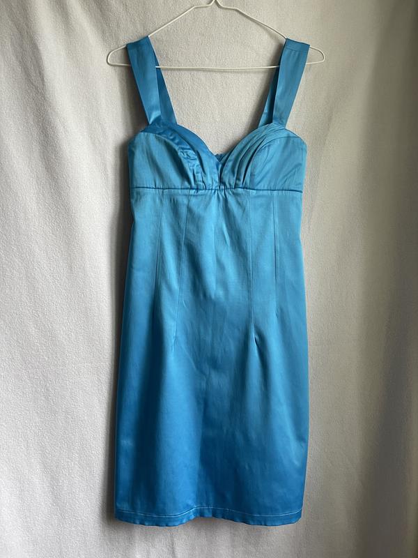 Платье, которое не оставит вас без внимания!) Красиво садится по фигуре, ткань тянется, цвет яркий, состояние новостных вещей. Отличная вещь для праздников. При вечернем свете эффект впечатляющей красотой. Замеры на фото, тянется. Хорошо подойдет на объем груди 94, бедра 97-100. Бирка срезанная, к сожалению