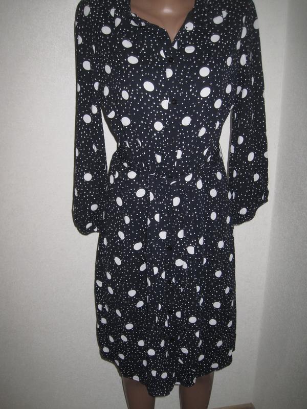 Вискозное платье рубашка халат в горошек Sosandar р-р12, вискоза шелковистая, подкладка полиэстер тонкий , не тянется, ПОГ48, ПОТ38, ПОБ49, до талии 40, длина 100, рукав 49, идеальное состояние, 270грн
