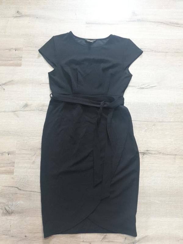 Чорна класична сукня спідниця на запах, пояс, талія трохи завищена, закриває пахові зони рук, нОГ 52 см, верх 40 см, спідниця 70 см, нОТ 50 см у нерозтягнутому виді, нOC 54 см
