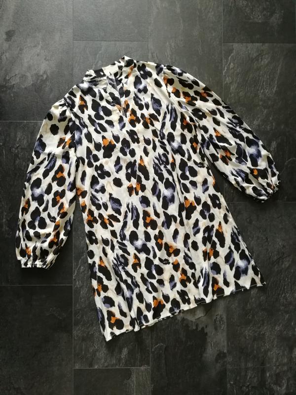Летнее платье Shein в идеальном состоянии. Базовый цвет - крем. Необычный принт не воспринимается как “хищь”, скорее как акварель. Манжеты на резинке, воротничок стойка, v-образный вырез неглубокий, талию можно назначить где захочется) Размер XL/EUR 44/US 12. Замеры: грудь - 53 см, полубедра - 63 см, длина - 93 см. Материал - полиэстр.