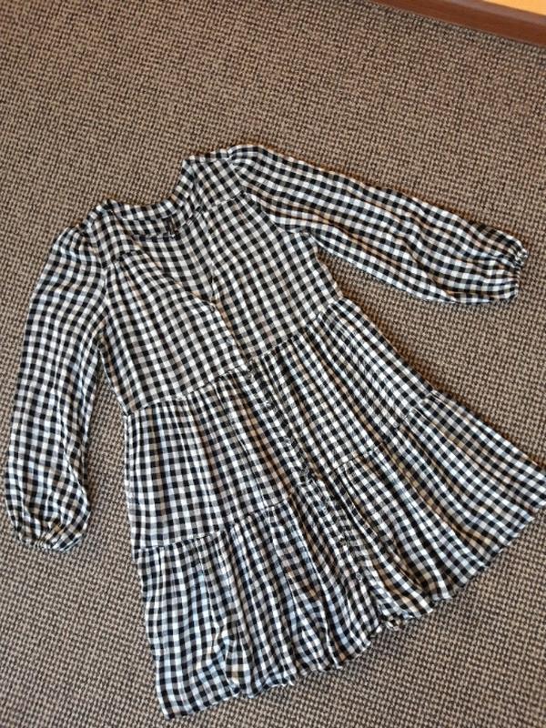 классное трендовое ярусное платье в клетку,стан красивое,плечи 40,пог 51,пот 50,бедра свободно,длина 91,рукава 60
