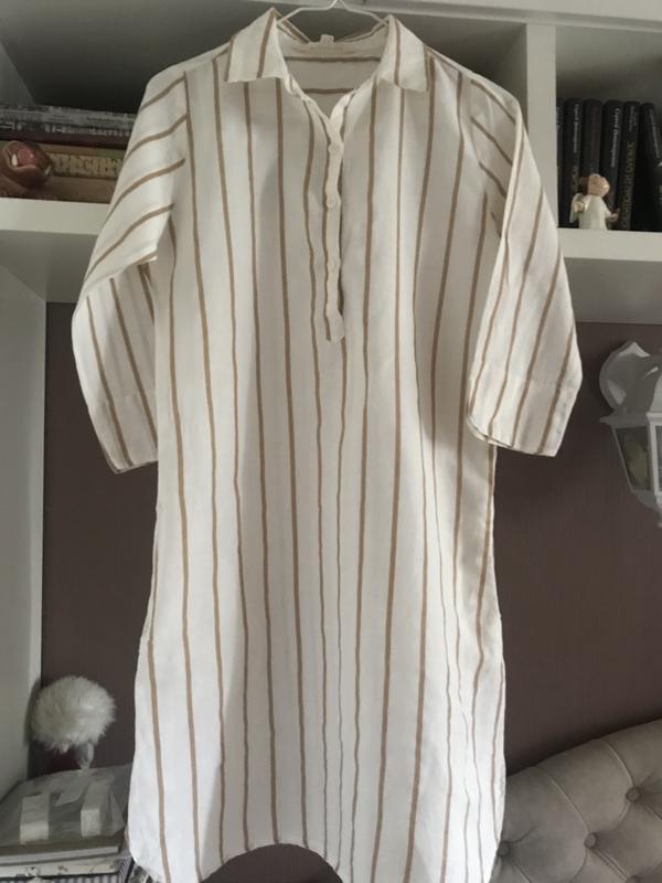 Льняное платье в смушку с разрезами по бокам.