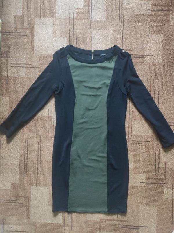 Платье в очень красивом состоянии, цвет черный, вставка хаки. Сзади на молнии. Длина платья 93 см Очень красиво смотрится на фигуре, размер 48