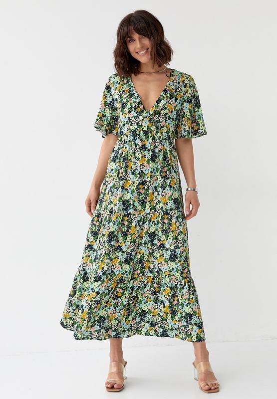 Длинное летнее платье салатового цвета с цветочным принтом. модель 300101 lurex