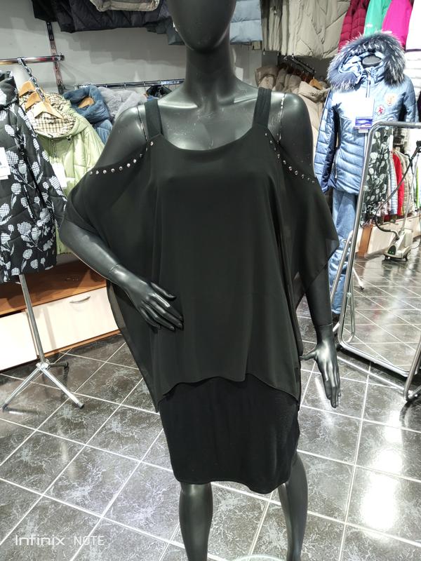 трикотажное платье выполнено с имитацией накидки из шифона, с обнаженными плечами, красиво смотрится и нарядно замеры: - пог 47(тянется до 65) - пот 45 (тянется до 63) - поб 53 (тянется до 78) - ширина внизу 51 (тянется до 67) - ширина шифону зверху 90+- - длина от плеча 97 состояние идеально Пишайте на мою страницу 😇