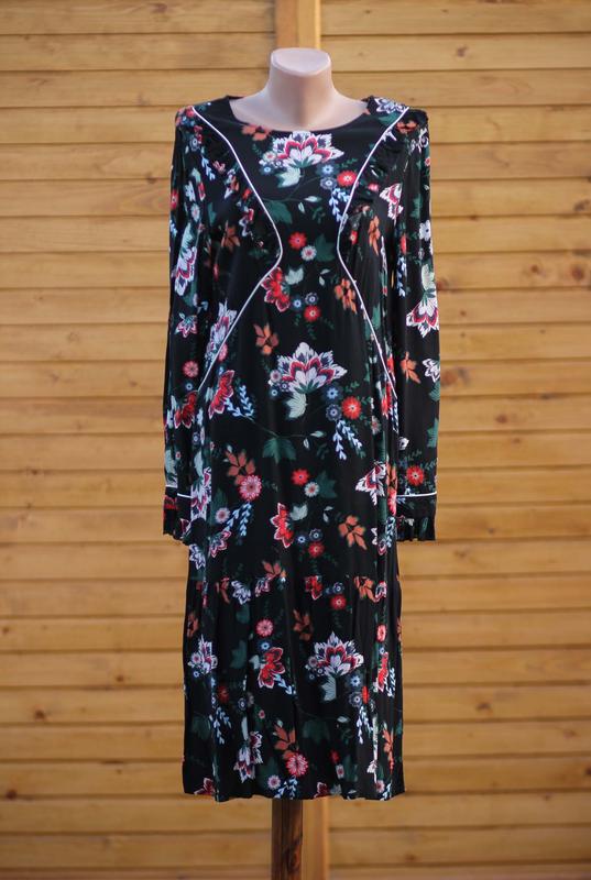 Гарна сукня міді. Стан ідеальний. Склад тканини: віскоза. Розмір вказано М. Орієнтовно підійде на розмір М , але краще дивіться на заміри. Заміри: Від плеча до плеча – 40 см Напівобхват грудей (ширина під пахвами) – 48 см Напівобхват талії (у найвужчій частині талії) – 47 см Напівобхват стегон – 54 см Довжина рукава від плеча – 62 см Довжина – 106 см
