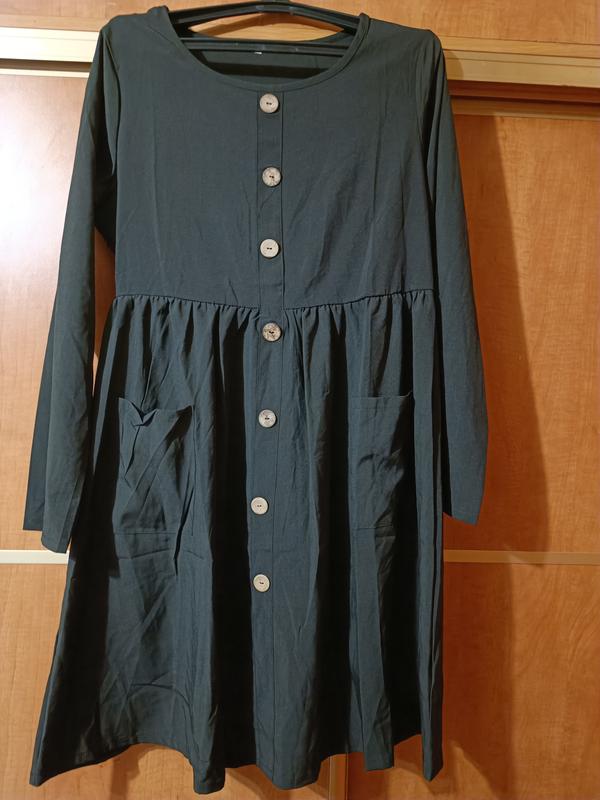 лёгкое платье с длинным рукавом, отрезная талия , отделка пуговки, впереди два накладных кармана
