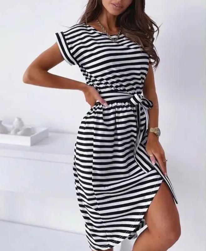 Летнее платье миди с запахом "Lady" Полосатый принт и длина миди – универсальное модное решение, традиционно популярное в летние сезоны. Новое платье "Lady" идеально подойдет для базового гардероба в теплое время года. Интересный фасон, небольшие рукава и удачная длина позволят носить его как на работу, так и на отдых и любые неформальные встречи. Особенности модели Стильное полосатое платье "Lady" имеет несколько особенностей: - крой на запах; - длина до колена (сзади ниже колен); - цельнокроеные короткие рукава с манжетами; - пояс на резинке. Благодаря мягкой резинке на талии юбка собирается в красивые складки и мягко обволакивает бедра. В комплекте с платьем идет пояс из такой же ткани, который позволяет подчеркнуть осину талию и женственную фигуру. Летнее платье "Lady" пошитое из легкого, воздушного софта. Материал приятно ощущается на теле, быстро сохнет и не раздражает кожу даже в жаркую погоду. Чтобы изделие сохранило форму и насыщенный цвет, рекомендуется стирать его при низкой температуре (30 градусов). Характеристики Стиль:Молодежный Сезон:Лето Длина по спинке110-112 см Длина спереди:82-84 см Длина рукава от горловины :18 см Материал: Софт  Таблица размеров Наличие на складе Цвет 42-44 46-48 Бежевый✓✓ Черный ✓✓