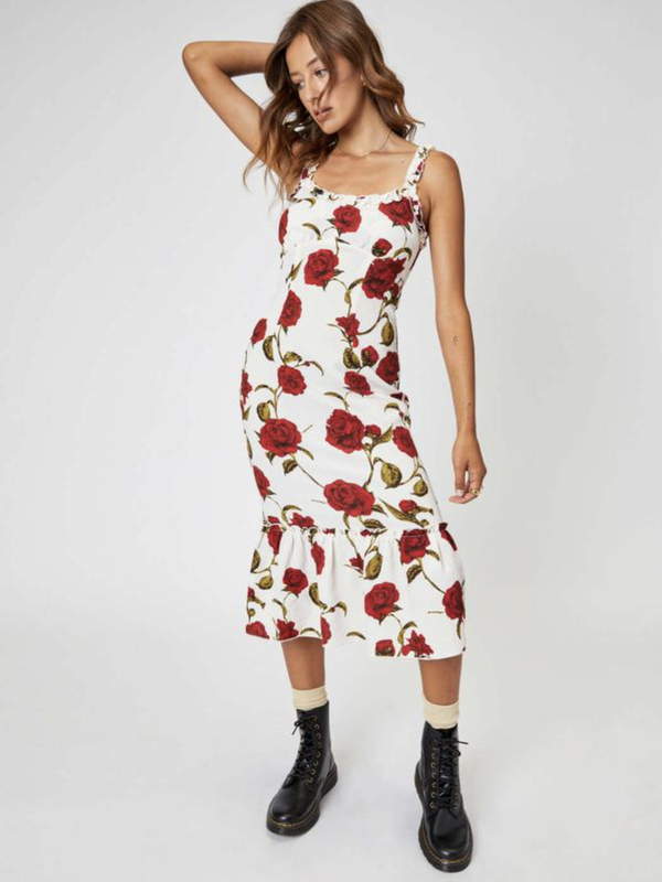 Продам платье миди в цветочный принт. Лёгкое , внизу волан, смотрится очень женственно. Состояние новой вещи. Размер М/ Л. Длина 114см, бёдра 53см, плечи 35см, от подмышки до подмышки 51см.