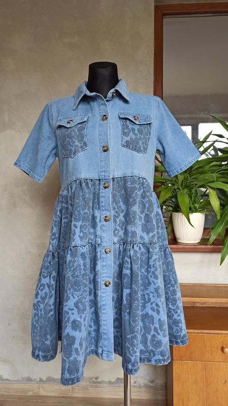 сток Джинсовое платье с животным принтом, плотный джинс. Она не легкая) Размер М ПОГ 48 ПОТ 48 длина 87 см.