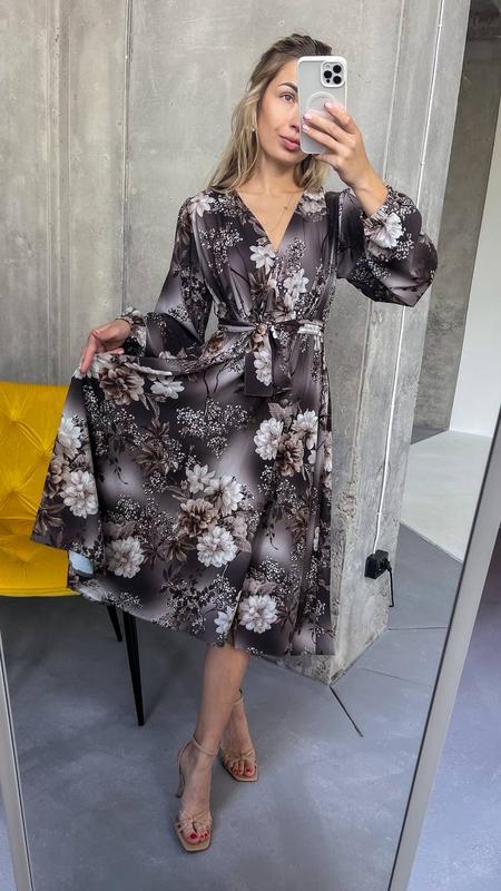 Сукня Арт.0335 Тканина:софт Розмір :42-44;46-48 Колір: зелений, коричневий. Сукня з легкої, дуже приємної тканини. На талії тоненька гумка, у комплекті з'ємний пояс.