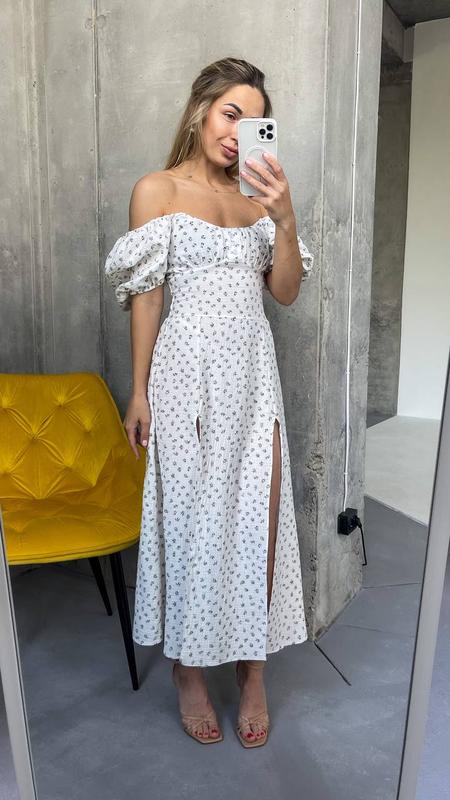 ☁️☁️☁️Новинка☁️☁️☁️ Сукня Арт.0485 Розмір: 42-44,46-48 Тканина: двошаровий муслін(100% бавовна) Колір: молоко, блакитний Ціна:830 грн Сукня довжини міді з двома розрізами. Ця сукня ідеальна для літа, тому що вона зі 100% бавовни. Тканина двошарова, приємна до тіла. Спинка на резинці, плечі також на резинці, добре тримаються. Заміри розміру 42-44: Ог: до 90-92 см От: до 70 см Ос: до 94 см Довжина: 126 см