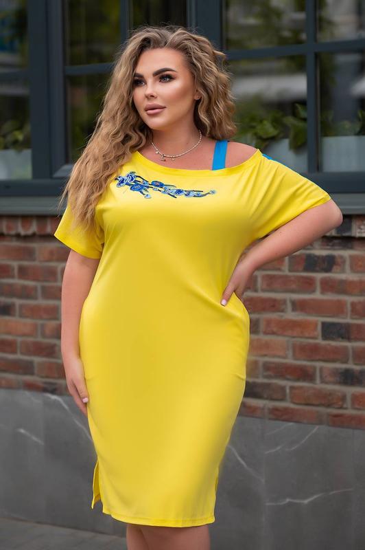 00159 Сукня Тканина :Софт Цвет:Желтый, электрик Размеры 48-50,52-54,56-58,60-62 48-50 Обхват груди 110 Обхват талии 106 Обхват стегон 116 52-54 Обхват груди 114 Обхват талии 112 Обхват стегон 122 56-58 Обхват груди 120 Обхват талии 116 Обхват стегон 128 60-62 Обхват груди 124 Обхват талии 120 Обхват стегон 132 Платье миди летнее с карманами, сезон летний, стиль повседневный.Ткань софт, силуэт приталенный.