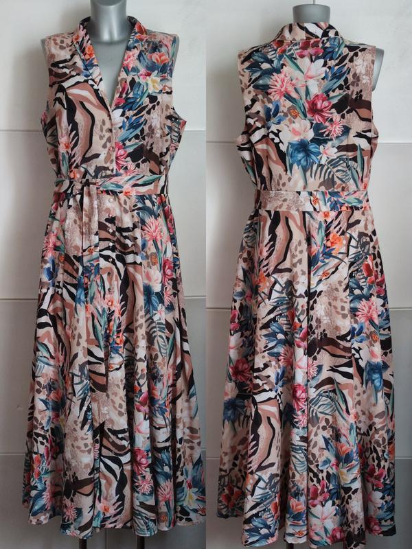 Сукня-халат Monsoon з квітковим принтом та поясом. Сукня із якісної тканини на підкладці. ✨ РОЗМІР 18 наш 52-54 ✨ Стан нової речі без дефектів. ✨Заміри: довжина 138 см., до талії 47 см., плечі 37 см., пройма 58 см., ПОГ 56 см., ПОТ 48 см., ПОС 75 см. ✨Склад 100% поліестер - гладка поверхня, з шовковистим блиском, матеріал дуже приємний на дотик і при одяганні речі, зносостійкий без втрати кольору, тканина не схильна до появи заломів при зминанні, простий догляд - прання у прохолодній воді.
