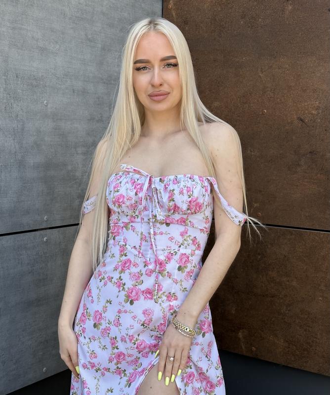 Бело-розовое платье миди с регулируемым корсетом и цветами