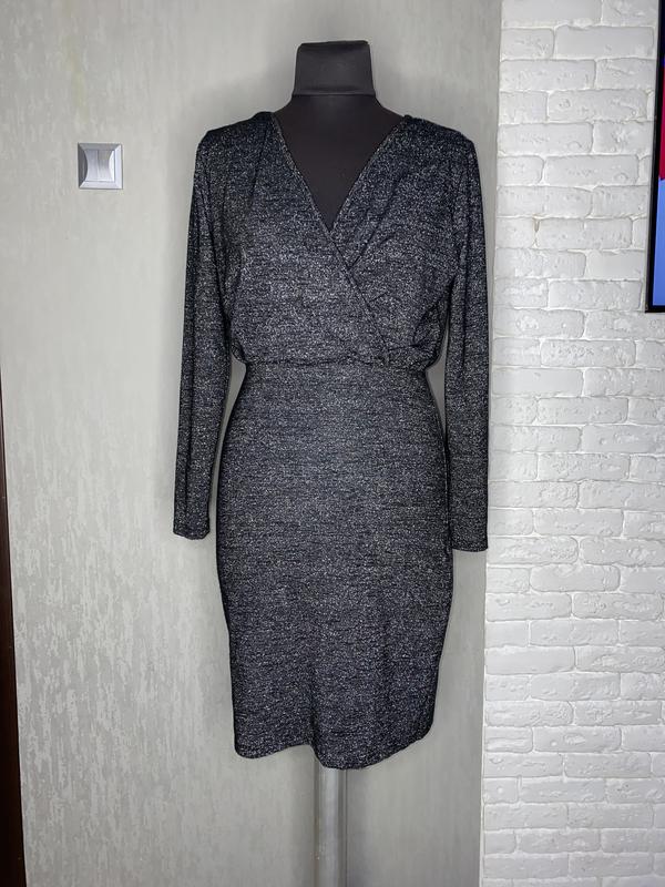 Шикарное блестящее платье-миди платье с люрексом Only, M. Длина 92см, рукав 59см, ПОГ 50-60см, ПОТ 32-55см, ПОБ 44-61см