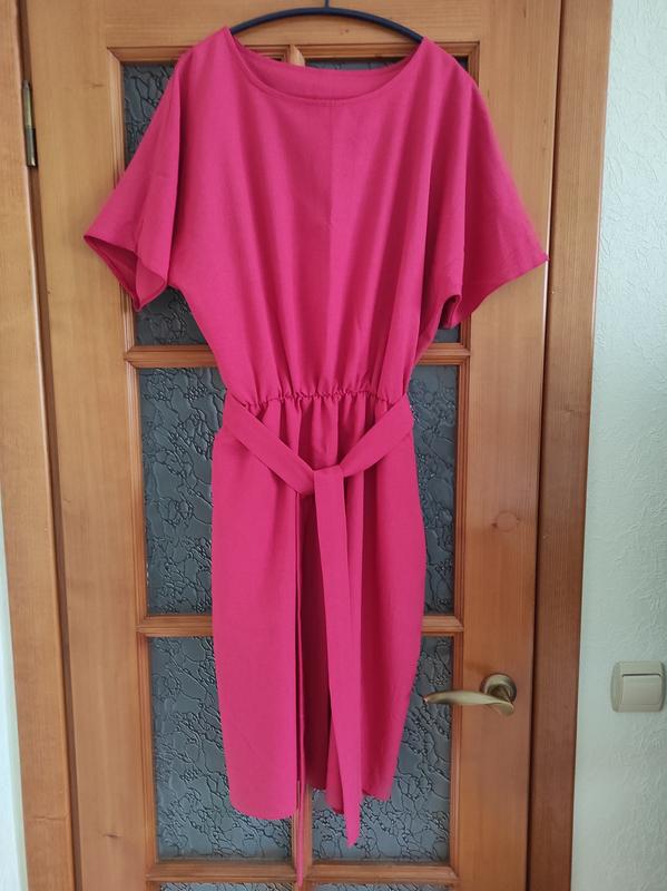 Яркое платье, подойдет как на работу, так и на вечернюю прогулку.Талия на резинке, а пояс из такой же ткани