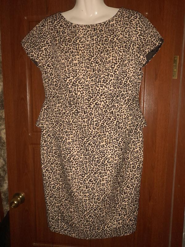 Стильное платье в леопардовый принт на подкладке,верх сзади на змейке,низ с разрезом ПОГ,52,54 см,длина по спине от горловины вниз 96 см.