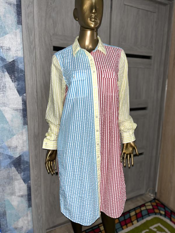 сукня -рубашка в смужку S-M Стан нової речі Довжина 98 см Пог 50 см Пот 53 см Поб 56 см, є кишені Плечі 40 см Довжина рукава 63 см