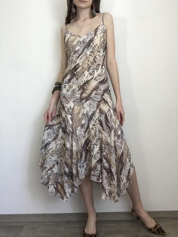 100% вискоза. классическое платье миди с зверьком принтом винтаж per una