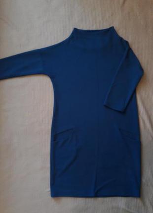 Платье синее миди под шею с карманами Размер L Пог 50 Пот 50 Поб 50 Длинна 90 Рукава 35