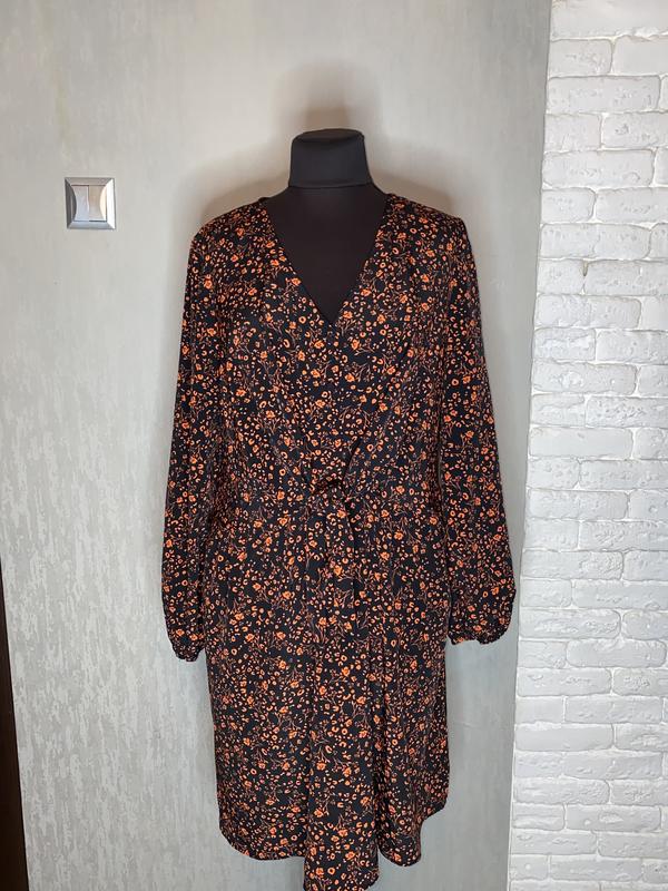Платье миди на длинный рукав платье с узелком на животе в цветочный принт primark, xxxl, 5...