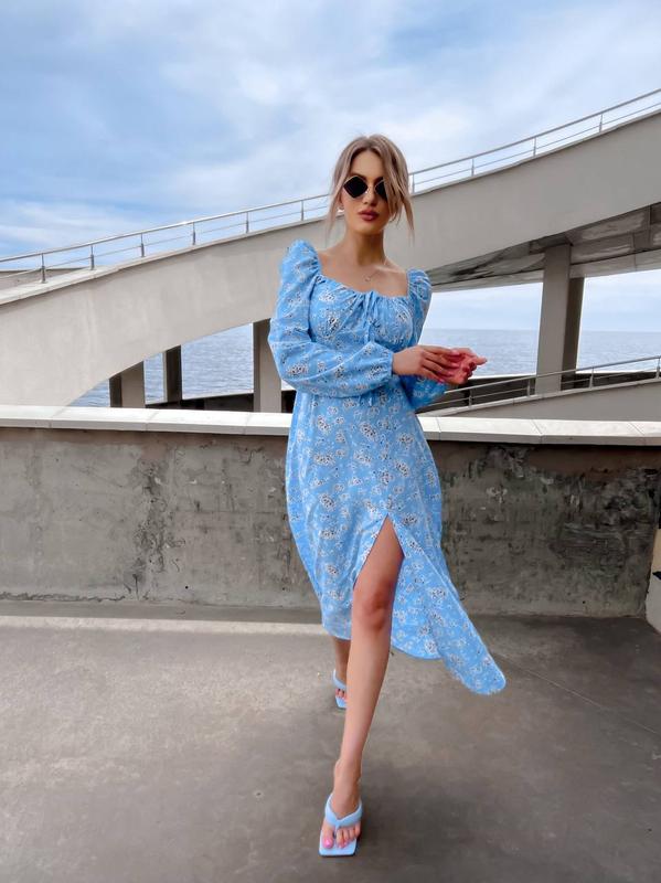 платье принтованное миди 🌸 есть наложка с предоплатой Арт. 10390 Материал: Софт принт., качество люкс! Размер: С,М,Л. цвет: голубой, белый
