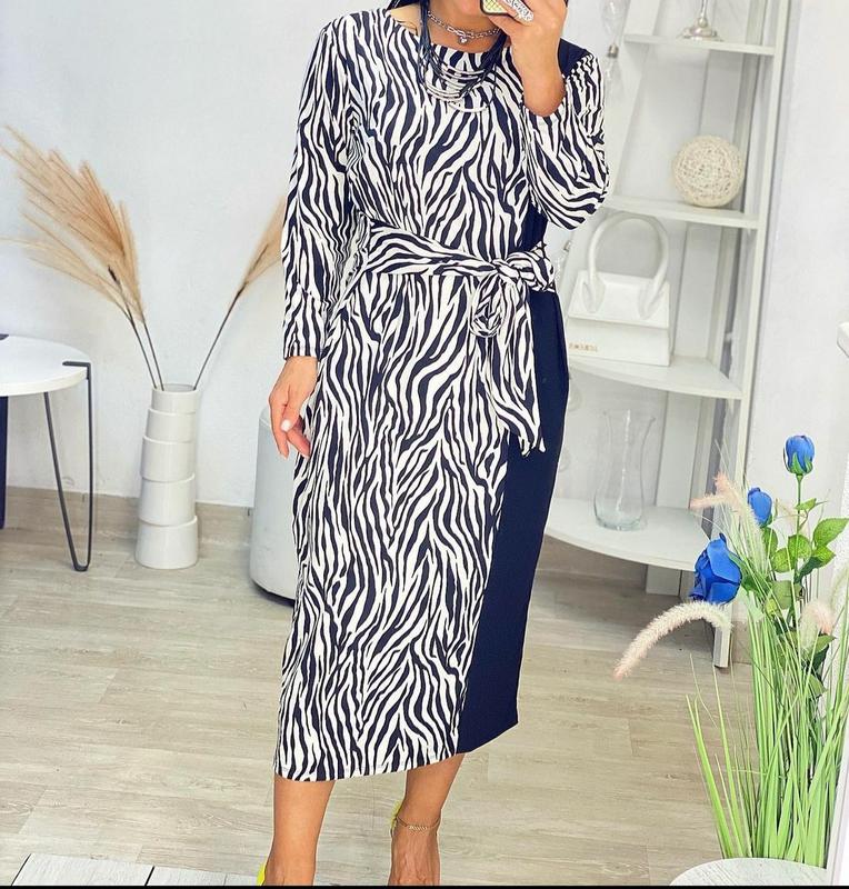 Стильное платье в анималистичный принт с поясом. Красиво тянется, ложится по фигуре, стройнит. Качество материала просто супер. пояс можно завязать также обратно