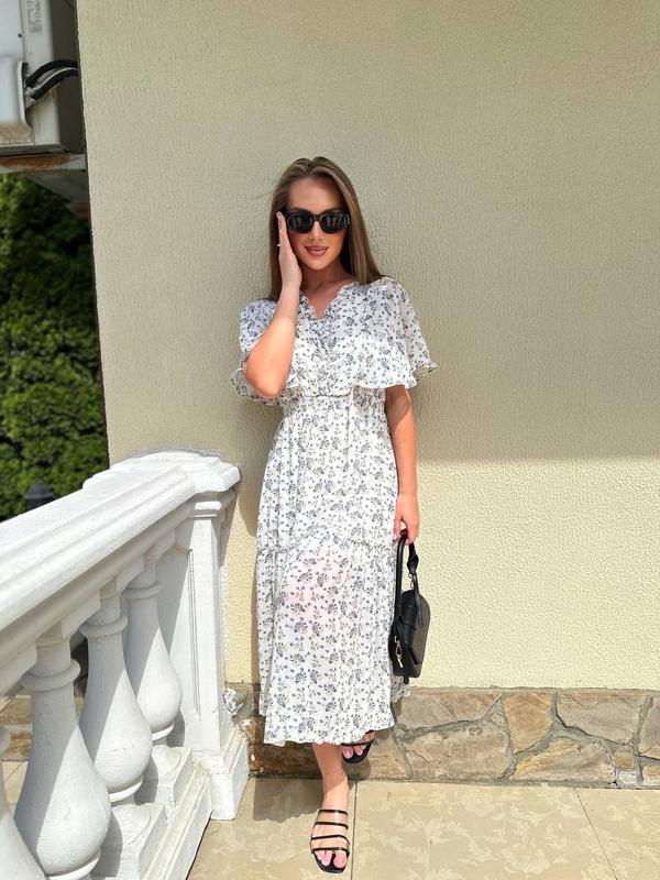 Ніжна, легка сукня з квітковим принтом з резинкою на талії💓 Мод: 2071 Колір: білий, блакитний Тканина: шифон на підкладці Розмір: універсал 42-44 ▪️Є накладений платіж з передоплатою 200 грн ✔️Надсилання новою поштою по всій Україні ✔️ 100% передплата на картку приват банку БАГАТО НОВИНОК в моєму інтернет магазині на СТОРІНЦІ ПО ДУЖЕ ДОСТУПНІЙ ЦІНІ