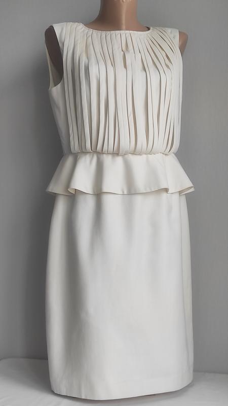 Оригінальна сукня Ted Baker молочно-білого кольору. Стан ідеальний. На підкладці. Матеріал: 72% поліестер, 16% віскоза, 12% вовна. Застібка ззаду. Розмір вказано 3. На останньому фото вказала мізерний нюанс на підкладці біля бірки. Заміри: довжина від коміру по центру спинки - 94 см; ширина в плечах - 41 см; НОГ - 47 см; НОТ - 39,5 см; НОС - 51 см; НО низу - 48 см. Додаткові фото та заміри надам за потреби. Дивіться інші мої оголошення.