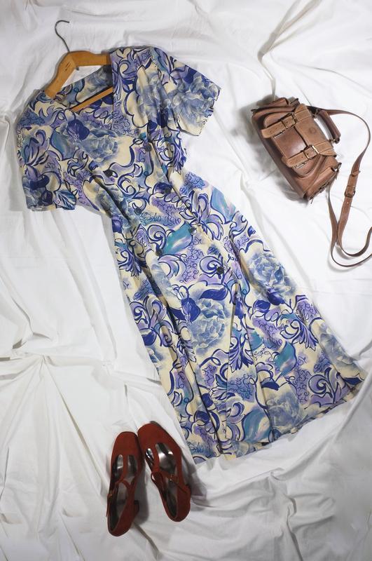 Стильное винтажное британское платье St.Michael 🖌 Отличное творческое росписьное полотно в виде платья. Сочетание нескольких техник росписи превратились в невероятную композицию, которая пахнет творчеством. Идеальное платье на каждый день. Комфортный крой, подчеркнутый двубортным рядом пуговиц. Не менее практичная длина и свободный крой. Бесспирательное преимущество этого платья-халата невероятно приятная ткань, струящаяся в движении и нежно обертывающая тело. Фасон приталенный. Струкость силуэта добавляют подплечники. Имеет перламутровые пуговицы. 100% вискоза. Размер маркованного 14, подойдет на M/L. Плечи 44 см. Длина рукава 23 см. Полуобхват груди 52 см. Полуобхват талии 49 см. Напівобхват стегон 57 см. Длина 110 см. Хорошее винтажное состояние. Имеет мини дырочки. Фото по запросу.
