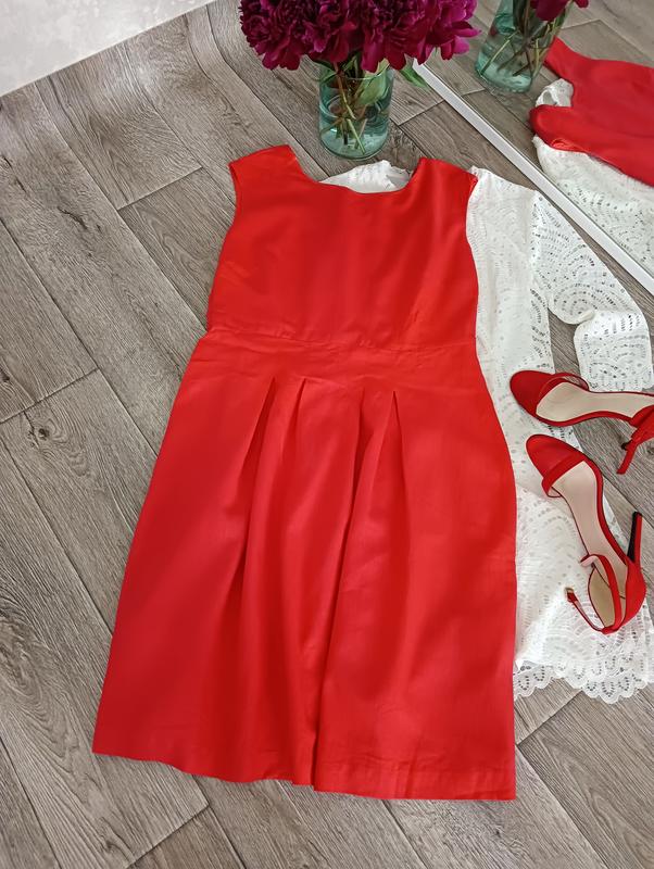 стильное....красное... изящное платье..с приоткрытой спинкой из натуральной ткани 💓 мерочки,: длина -100 ПОГ -49-51 Пот -40-42 Бедра - свободно плечи 11 Simon Jeffrey состав: 54% лен 46 вискоза