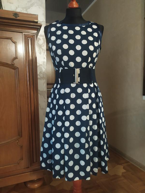 Продам чудову сукню в горох. Состав 100% хлопок. Цвета яркие, выглядит супер. Очень приятная к телу. Застегивается сбоку на потайную молнию. Размер 10/12. Пояс в комплекте, подчеркивает талию. Замеры: ПОГ 43+ витачки длина по спинке 90 см ПОТ 36см ПОБ свободно полуширина по низу свободно Смотрите также другие Мои объявления есть много интересного.